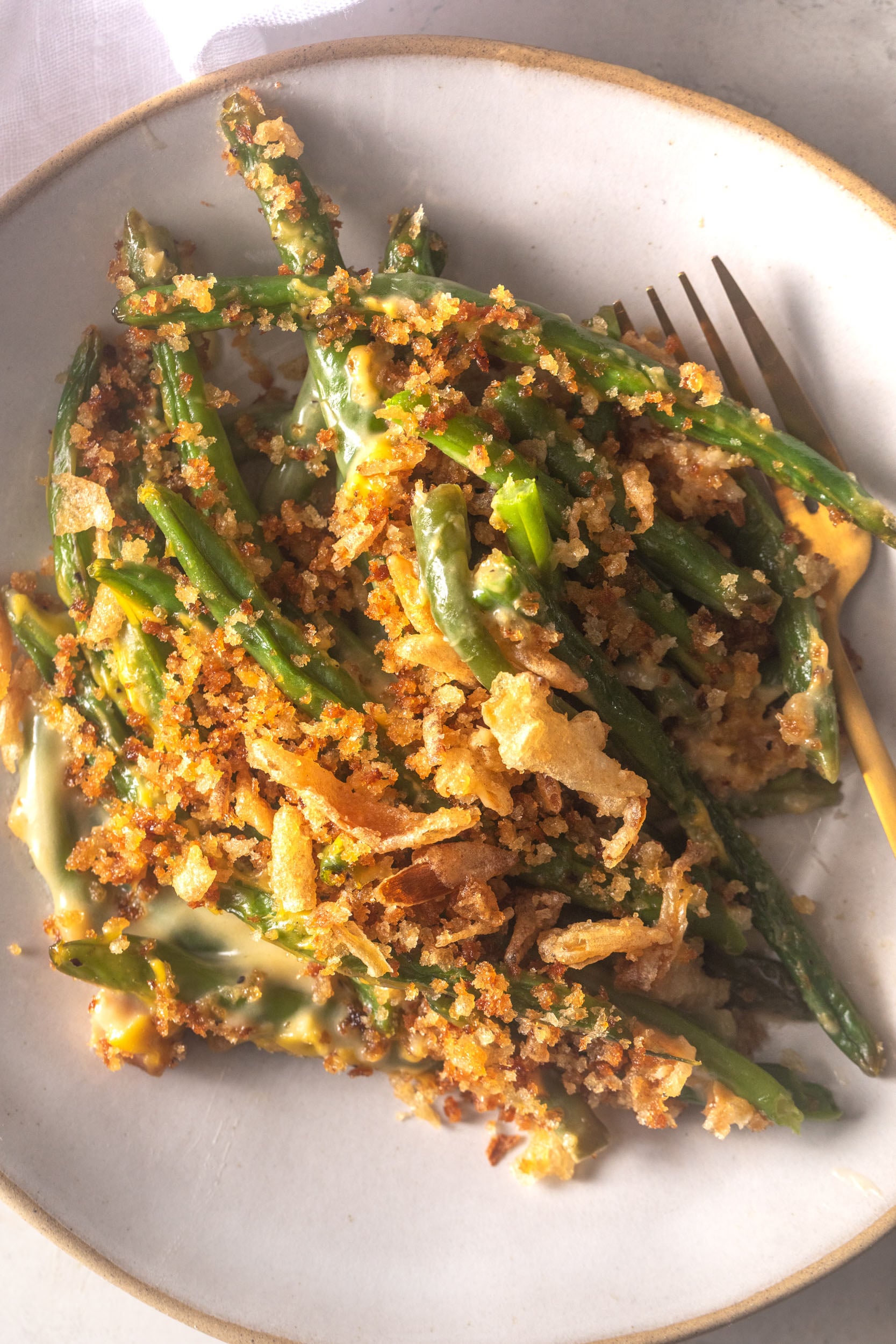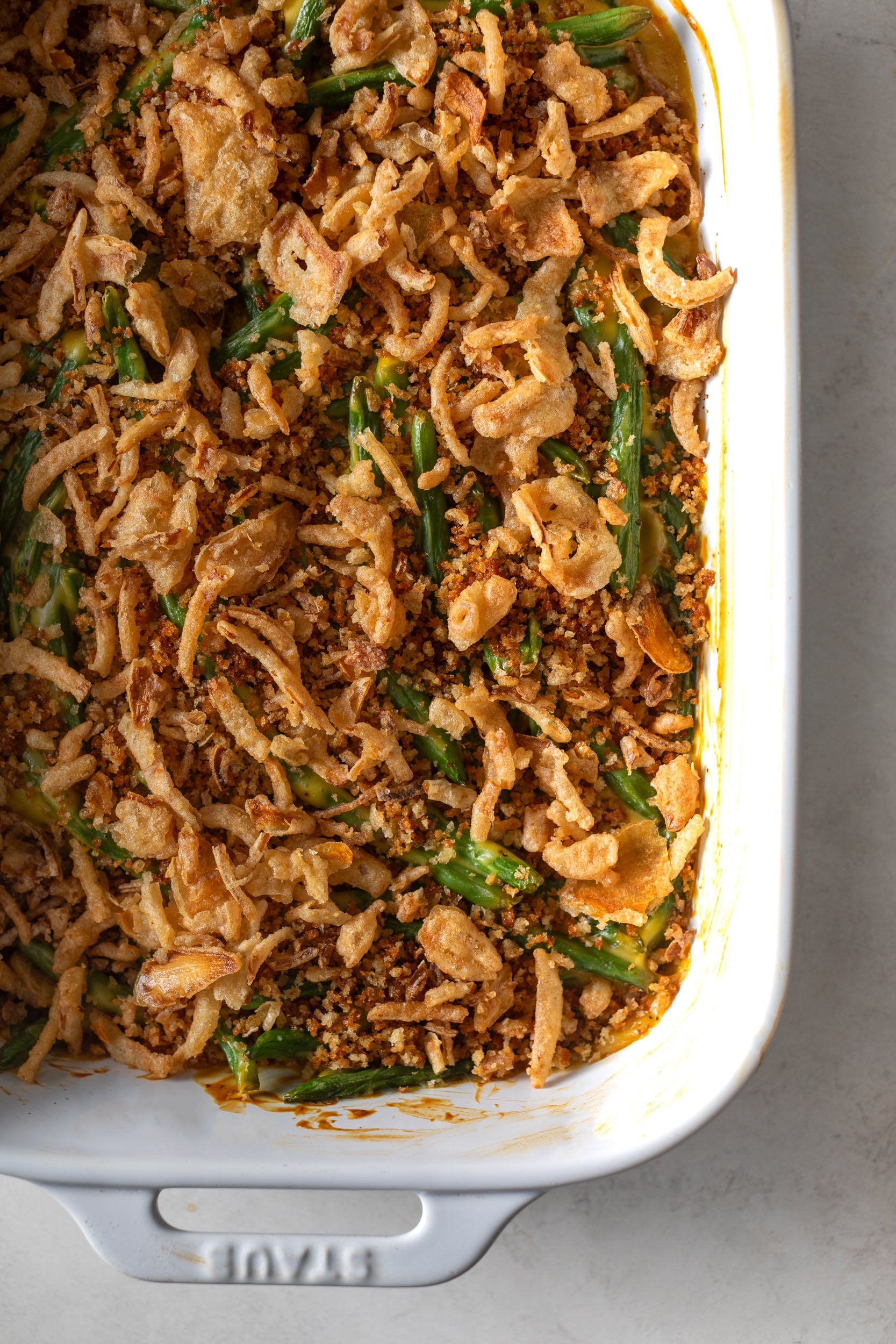 - Add Breadcrumbs and Fried Onions at the End: Sprinkle the breadcrumbs and French fried onions on top during the couple of minutes of baking to keep them crispy.