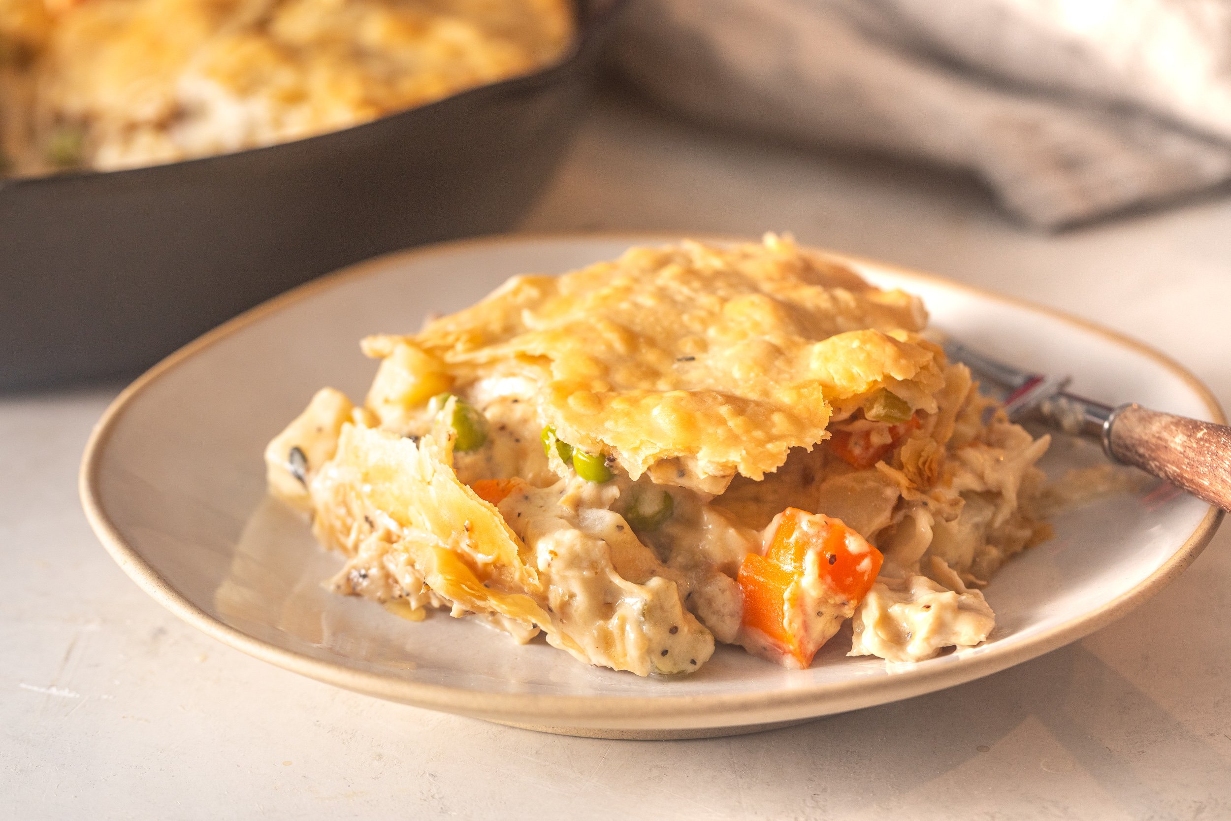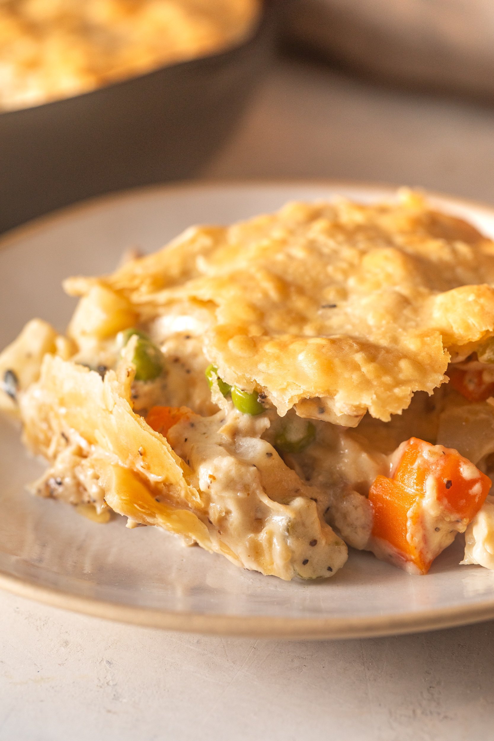 - It's super comforting. The creamy filling, tender veggies, and flaky golden crust, YUM!