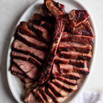 This reverse sear porterhouse steak is smoked low and slow, then finished in a hot cast-iron skillet for a perfect crust and juicy, even doneness. A steakhouse-quality dinner that’s easy enough for weeknights and impressive enough for date night at home.